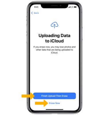 4. Select Erase All Content and Settings to reset device, then selectContinue.